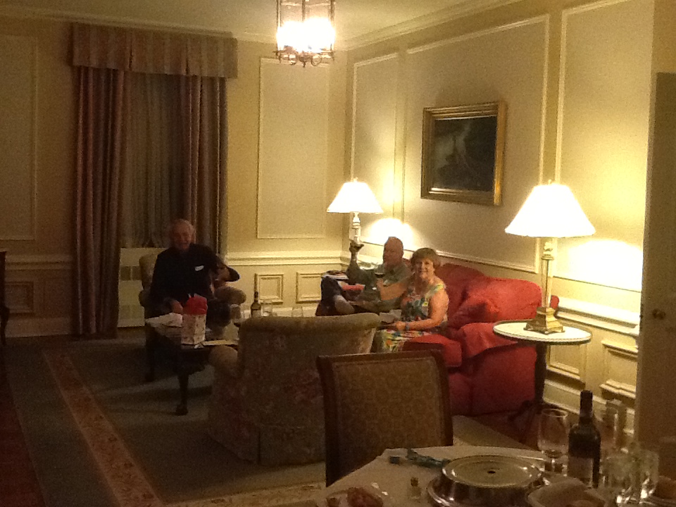 Since we had such fancy digs, we canceled our dinner reservation and decided to stay in and order pizza. We started in my parent’s suite for cocktails and then migrated up to our room for pizza and Chianti from room service. What a night!