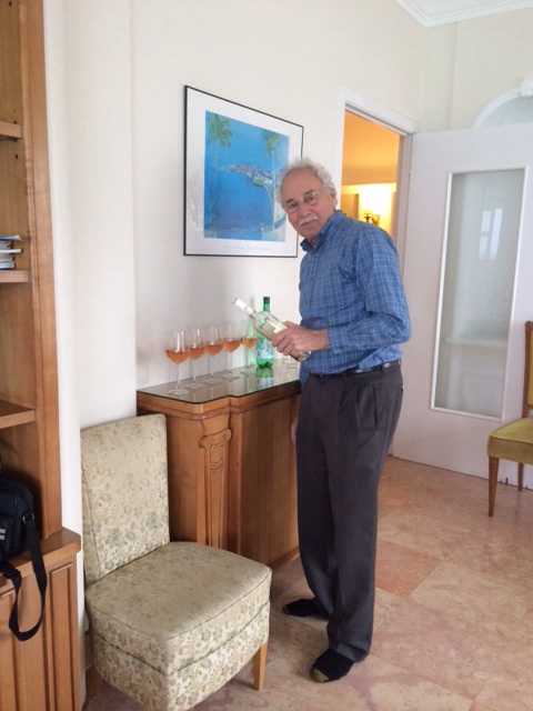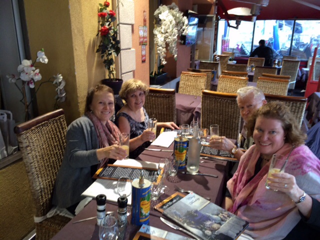 The next day we hosted Anna at our apartment for a light lunch and visit to the Matisse Museum. Well, our light lunch (with a bottle of Rose – another specialty of Provence) turned into an afternoon (with another bottle of Rose) – but much fun. We never saw Matisse. Instead, we went exploring and wandered around the landmark Hotel Negresco. Its rotunda was built by Gustave Eiffel and features a huge chandelier (16,000 pieces of Baccarat crystal) that was supposed to go in the Romanov palace – ordered by Czar Nicholas himself. But then the Russian Revolution happened, so it ended up staying in Nice. We finally settled down to dinner at a french/itialian brasserie on the Promenade – and of course we started with our new favorite aperitif – Pastis.