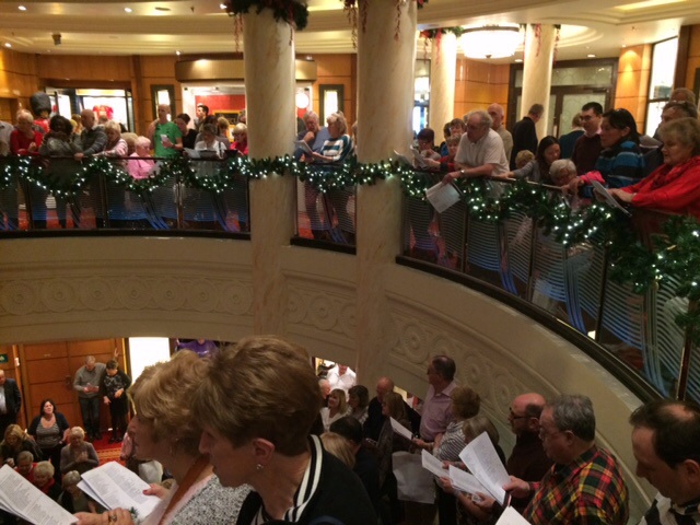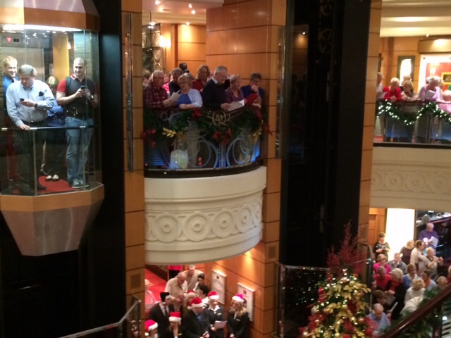 The ship held Christmas Caroling one afternoon. Hundreds of people showed up in the Grand Lobby, where everyone lined up on two levels to sing their hearts out. Even the crew took pictures of this unique event.