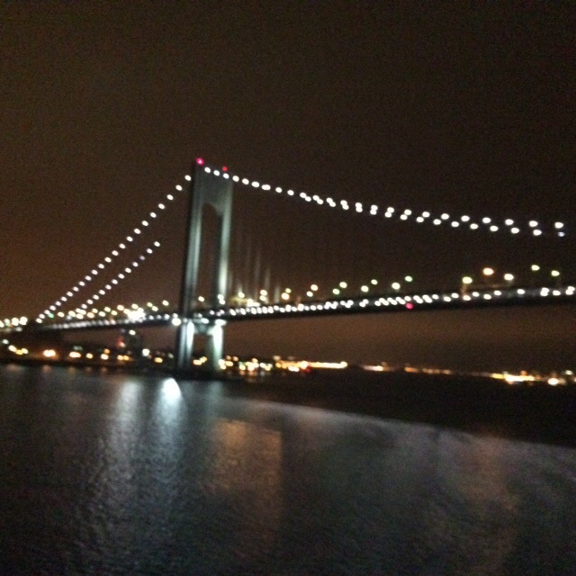 The captain announced that we would be docking very early so if we wanted to watch the approach to NYC, we would need to set our alarms. We woke up at 4:30 and watched the QM2 glide under the Verrazano-Narrows Bridge (with only 3 meters to spare!) and then got our first glimpse of the Statue of Liberty, which brought tears to our eyes. Frank’s parents made this journey in 1925 and 1927, coming from Naples to Ellis Island. His dad came first and then sent for his mother, who was just 19. Imagine being alone on a ship across the Atlantic, coming to a whole new world, and seeing these same sights.