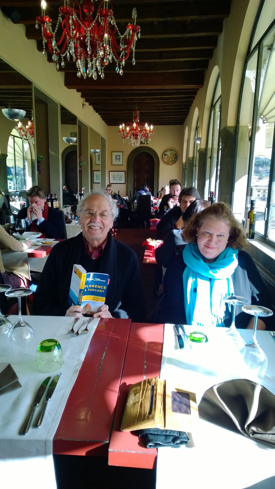 We got out of town – by way of city bus – to the hills above Florence to the charming town of Fiesole (pronounced Fee-eh-SOLE-aay). We climbed, climbed, climbed and were rewarded with an amazing view of the city, as well as La Reggia degli Etruschi, an inventive restaurant at the top that served homemade pasta with a gourmet flair – mine had pear, roquefort cheese, and poppy seeds.