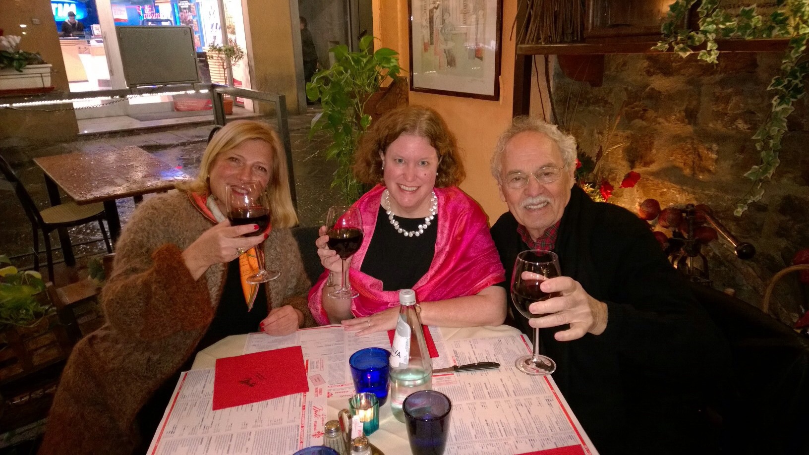 We bid Janet farewell with a toast of Tuscan red wine at the fabulous rooftop bar at her hotel, overlooking all of the sights we had been admiring. Since it is January, they have heated floors, fur seat cushions, and white blankets to wrap up in. Very chic. What a fun time we have had!