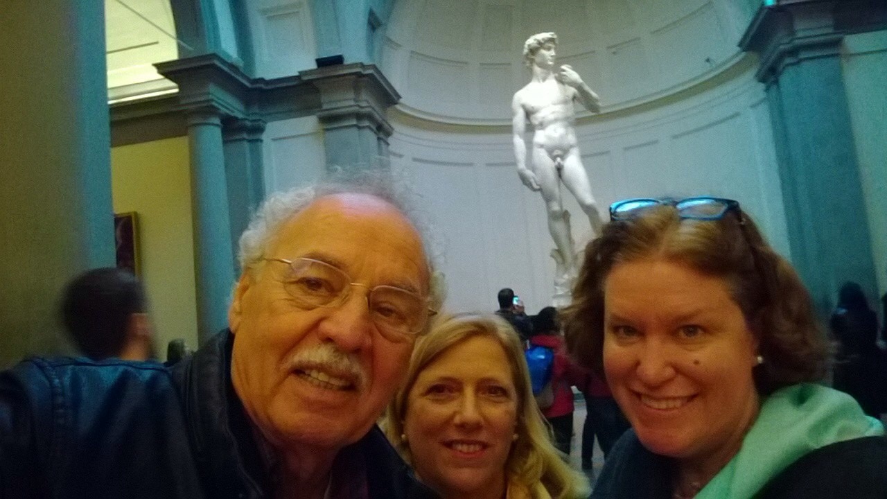 Probably the most spectacular highlight – a visit to the Accademia to see Michelangelo’s David. It is awe-inspiring every time you see it. And January is a perfect time to visit because no lines. (We took a selfie – along with everyone else. Some people even had these cool gadgets that extended their phones out so their selfies could catch more background. Ours is old school.)