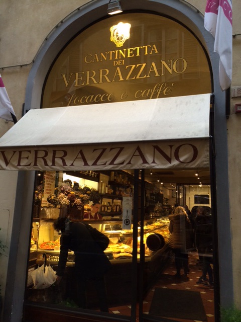 The cafe – the Cantinetta del Verrazzano – is a bakery specializing in focaccia and owned by a family that is famous for its wines. It only has 4 little marble-topped tables in a narrow space, and we were super lucky to snag the table by the window. It was a rainy and cold day, so very romantic and cozy. We had a glass of Verrazzano Chianti and shared an assortment of facaccia finger sandwiches and Tuscan prosciutto.