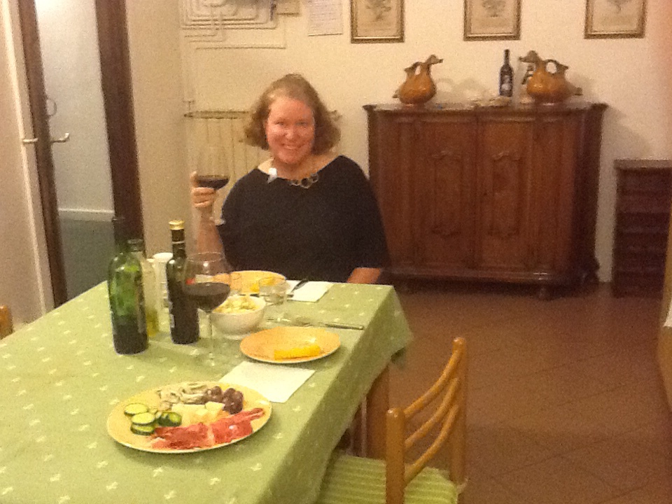 So, in lieu of dinner out, we opted to grab a mix of Italian antipasti at the local market and eat in – we feasted on alice (little marinated fish), polpo (octopus), prosciutto (ham), olives, and polenta cakes. Washed down with the wine from the leather store – see prior post. : ) We are really getting into the spirit of things here!