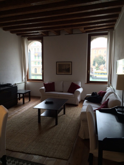 We have one bedroom, bathroom, galley kitchen, and living room with sunny windows overlooking the Grand Canal. We’ve had fun just gazing at all the boat traffic going up and down.