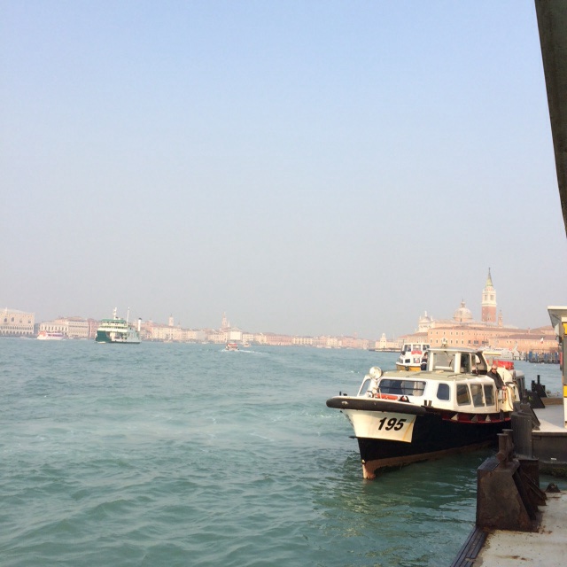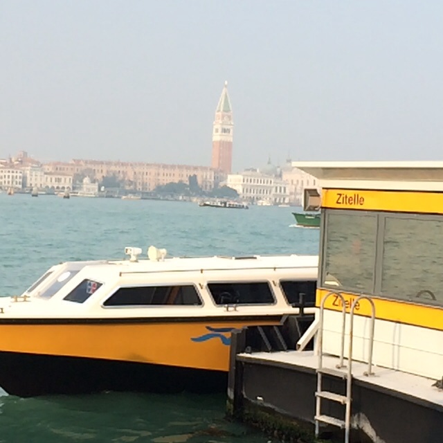 We look at our maps and see we need Vaparetto #2, which stops at San Marco. Great – we are right here. We hop on, only to discover it is going the wrong direction. So we make our way back up the Grand Canal back toward our home where we started the day. No worries. It is a scenic trip. I snagged us seats on the front even, so we can enjoy the ride. Well, Vaparetto #2 goes up the Grand Canal, around by the parking lot (not so scenic) and then out to the open water of the lagoon before stopping in Guidecca.