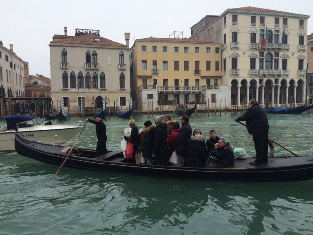 We tried a new form of transportation to start our trip – the traghetto. There are only about 5 bridges across the big Grand Canal, so locals use these little boats to quickly cross in between. It is 2 Euro to cross, and you usually have to stand up the whole way (but it’s a short ride). The boats are manned by gondoliers – they have to each do their turn of providing traghetto services a couple of times a month.