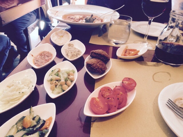 We ended our day with lunch in a restaurant the guide recommended – called Gam-Gam Kosher. It was wonderful. They have Italian food but also Middle Eastern (like hummus, falafel, and baba ganoush). We ordered a bunch of appetizers and feasted with delight, washed down with Israeli wine.