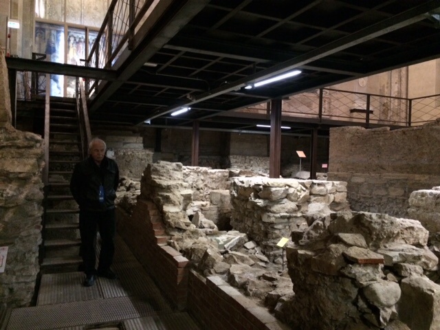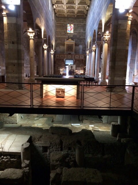 This is the church that is the same piazza as our apartment (see photo at top, taken from our window). It dates to the 12th century, which is impressive enough. Add that Puccini was baptized and was the organist there, and even more impressive. But the best was the church sits on top of an archeological treasure trove that was just discovered in 1969. Archeologists were able to excavate 5 layers of ancient Roman roads, religious graffiti from the prior church’s wall, an old baptistery, and a Roman bath – all from different periods. The mosaic pictured below is from the 1st century BC! They have scaffolding, so you can walk underneath the church floor among the ruins. Apparently this isn’t one of the highlights (or now as well known) because we had the place all to ourselves. Amazing!