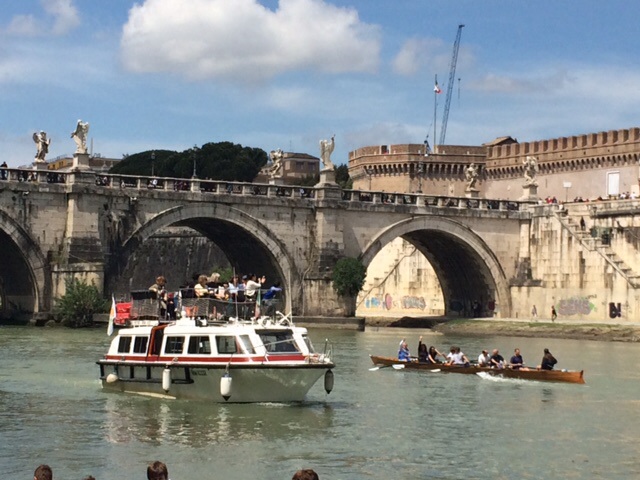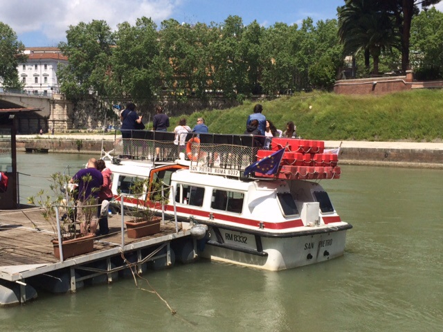 If you haven’t been to Rome, the Tiber River is not that big. It is muddy with a swift current and has a series of rapids part-way through the town. So the range a boat can go is somewhat limited. But we still would see a different side to the city.