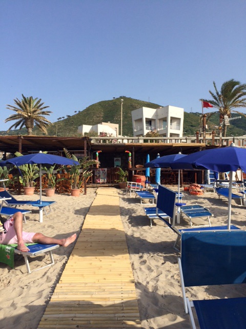 We are here just before the high season so not very crowded – a great time! There are private beach clubs all along the beach where you can pay 10 Euro and have an umbrella, two chairs, and access to a bathroom and snack bar. We can leave our stuff there, and they will watch, while we stroll up to the lungomare (street along the sea) for lunch. There is also a man who walks around selling coconut for 1 Euro a slice (it hits the spot on a hot afternoon!). This is our favorite place.