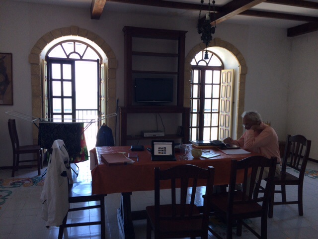 We have a little one-bedroom apartment right on the water. In the picture above, it is the building sticking out – we are on the 2nd floor with green shutters. We have balconies on three sides and amazing views. Wow.