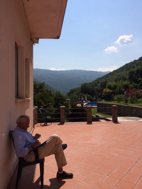 The owners turned the outbuildings, dating from the 1800s into 10 spacious rooms, which are very nice and all have their own entrances and lots of privacy. There are little nooks and crannies everywhere to read or just enjoy the view, along with a pool that overlooks the mountainside villages in the distance. And there is no WIFI except at one spot in the center of things – we called it “The WIFI Chair.” So – it was an excellent chance to really unplug and relax.