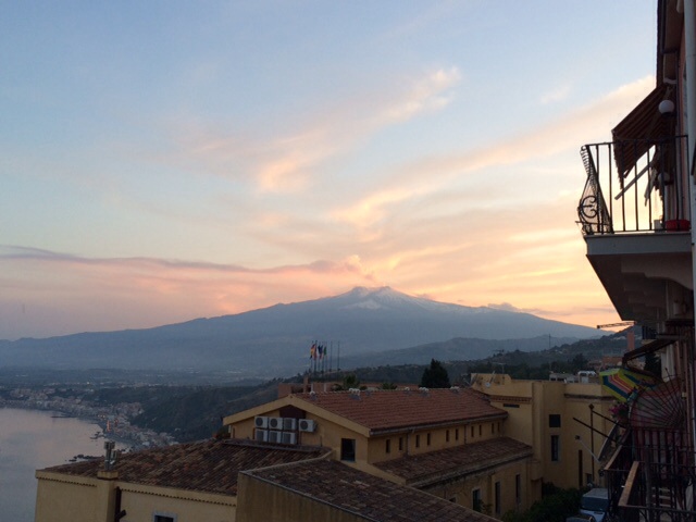 We have a fabulous view of the sea and of the big volcano, Mount Etna – we can even see the smoke from our balcony. We have a little kitchenette, so have done some cooking, but also have housekeeping and even a pool! After almost 6 months of apartments, this is a real treat – we are reveling in being pampered – even if just for a few days.