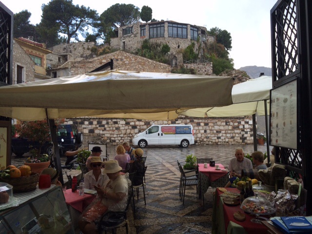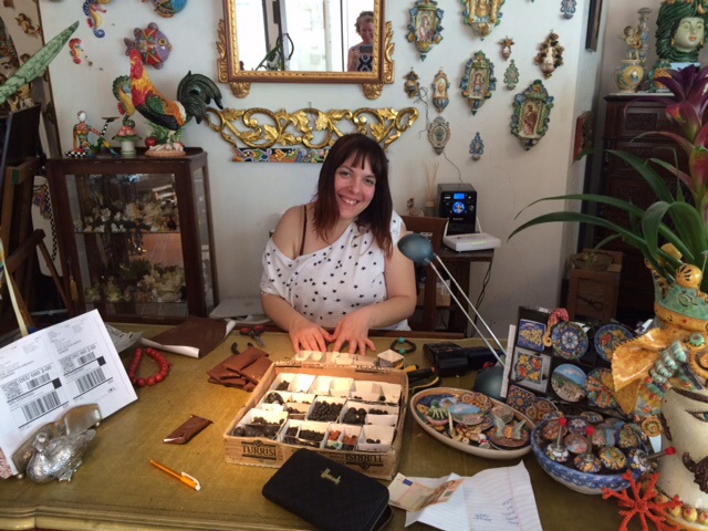 After lunch, we explored the duomo and shops. I even discovered a jewelry designer who makes one-of-a-kind jewelry out of lava from Mount Etna (we have seen this lava jewelry, but hers definitely had a flair). We loved Castemola!
