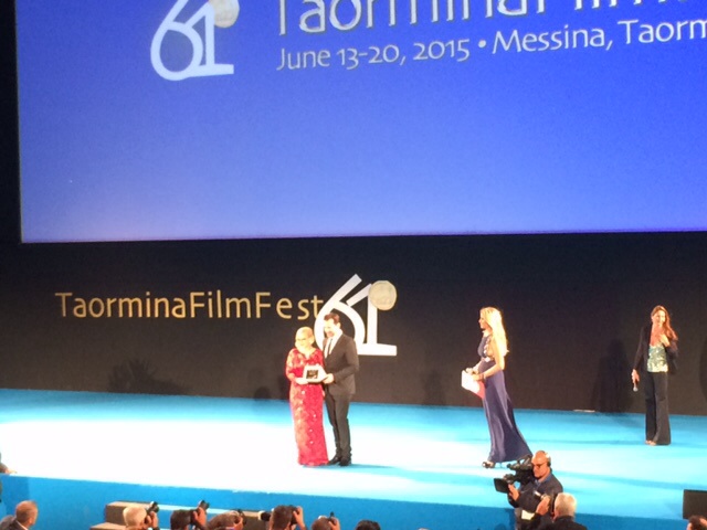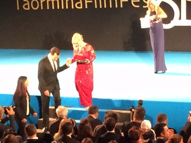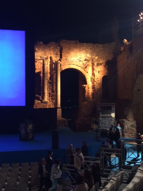 The theatre is next to a 5-star hotel, the Grand Hotel Timeo, which has hosted movie stars for years. We could catch a glimpse of one of the fancy parties out on their terrace. Soon, the stars – dressed in formal attire – started making their way into the theatre with us, stopping to pose for pictures along the way. Once settled, the ceremony started. Every night they give out awards to visiting stars. It was all in Italian, so we weren’t completely sure what they said, but was fun to watch. The highlight was a special award given to the American who had won the Best Actress Oscar this year, Patricia Arquette, who was actually there and walked up and accepted. Wow!
