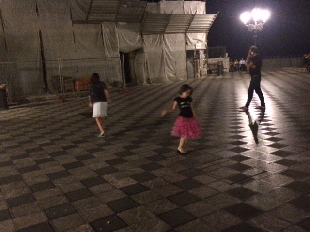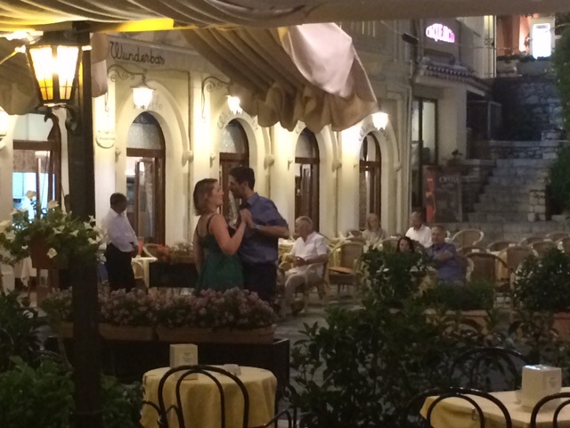Wunderbar is located on one of the most famous piazzas in Italy – with a distinctive checkerboard pattern overlooking the sea. The girls wanted to dance, so Frank and I sat at Wunderbar with our after dinner drinks, while we kept an eye on two girls twirling around and soaking up Sicilian life.