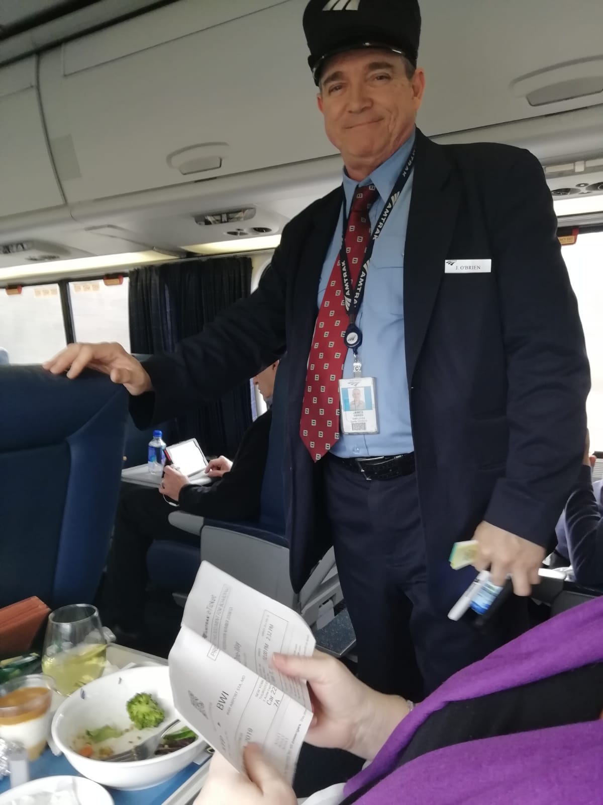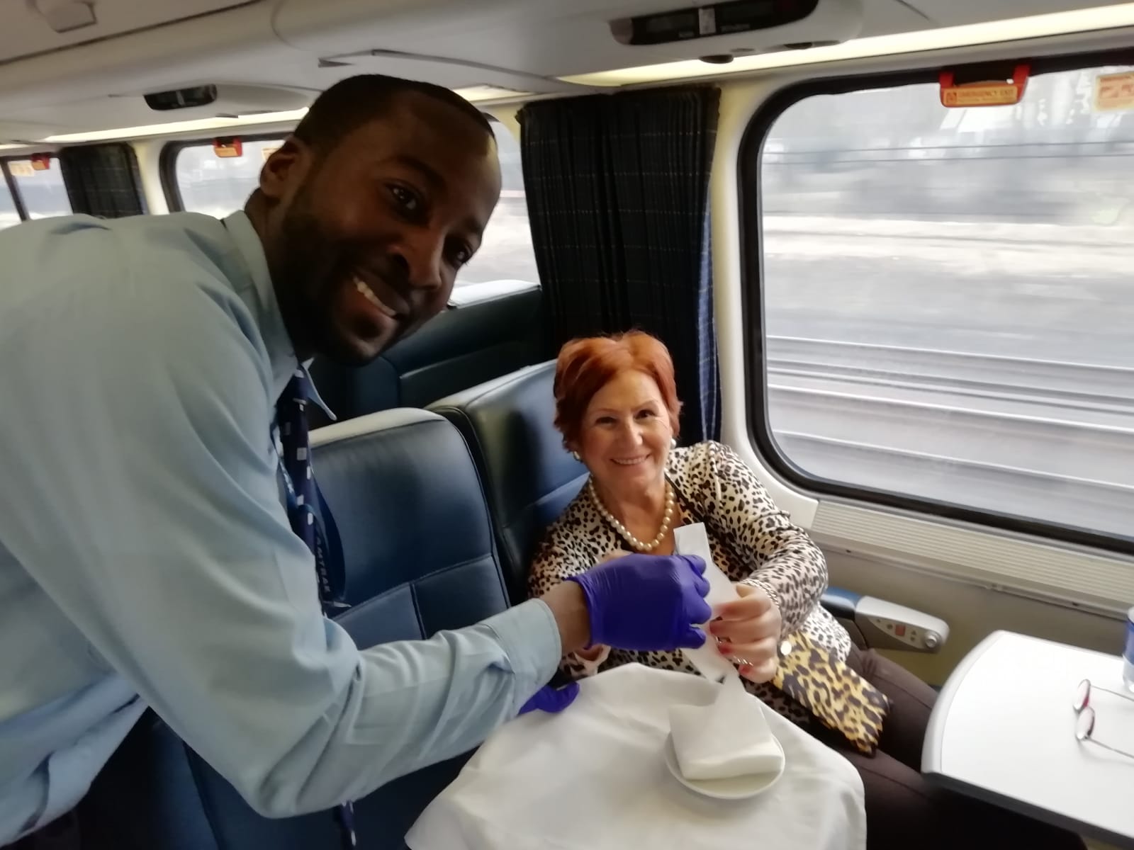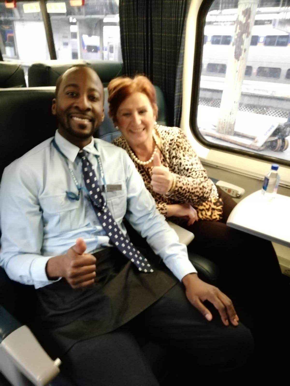 And absolutely loved our train attendant – especially when he brought hot towels – that got another “Mamma Mia!” (And she made him reenact it for the picture.)