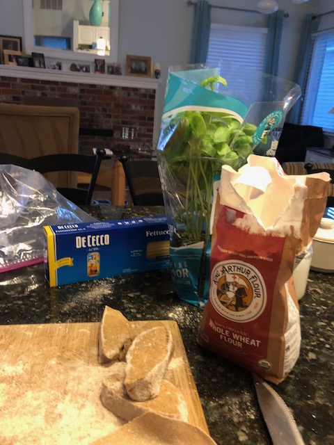 On our first night home, it was snowing and we were tired, so I picked up zucchini ricotta ravioli from the refrigerated section at the grocery store (what I consider the “fresh” pasta, trying to impress our Italian guest). It was fine, but after that, Enza decided to take matters into her own hands and teach me a thing or two!