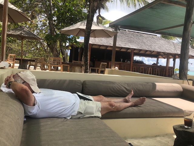 And after lunch, the beach club is a perfect place for a nap. (Notice the fishing pole, too – Frank has found his place!)