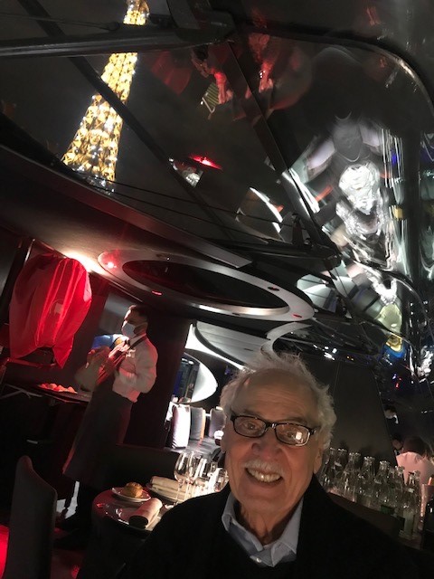 But then, the waiter and the bartender marched over and, with quite a flair, placed 2 crepes on the table and poured a half-full glass of Grand Marnier (quite a lot) on top of each crepe. And then – whipped out a lighter and set it all on fire! I gave a little yelp and got my scarf out of the way just in time!