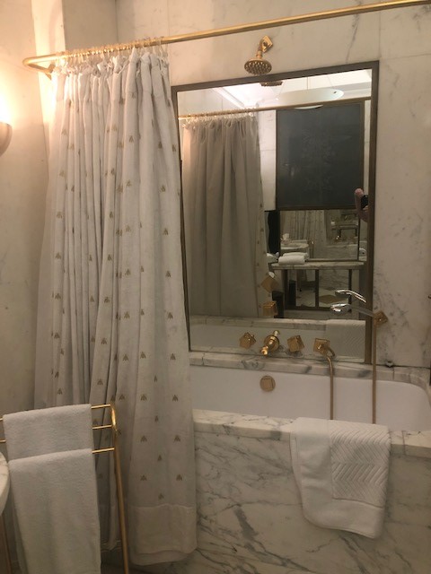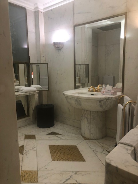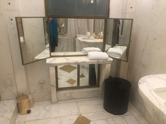 And a very fancy bathroom – complete with a gold-inlaid mosaic floor!
