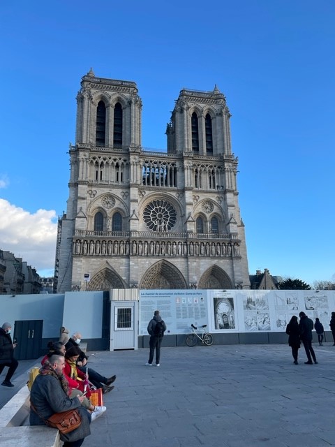 Frank and I were both sad this afternoon so decided to take the water taxi down to Notre Dame. The church is closed due to the fire in 2019, but people had started to gather on the plaza. A duo set up and started singing songs of peace. We were with people from all over the world – it was a really a special moment.