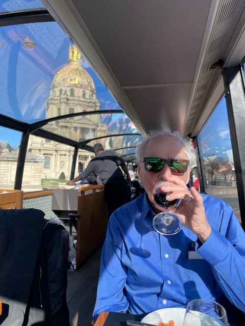 And while you ride around, they serve 4 courses – sea bass gravlax, salmon, veal, and the Paris Brest (like an éclair) – complete with wine parings and espresso to top it off.