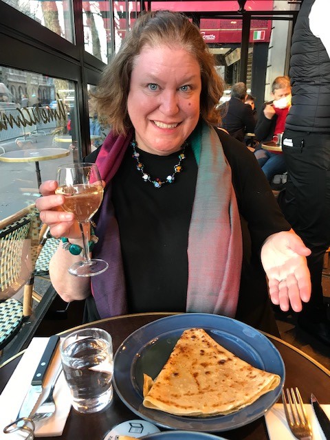 A quick blog today with an experience that gave us a little surprise!  We stopped into a creperie at the end of a day on Ile de la Cite (near Notre Dame) for a dessert and wine.  We confidently ordered the Grand Marnier Crepe, which is made with an orange brandy liqueur.  When I have had this before, it has the flavor but no alcohol – or it has been burned off in the cooking.