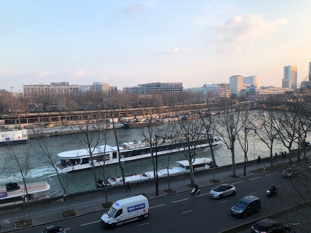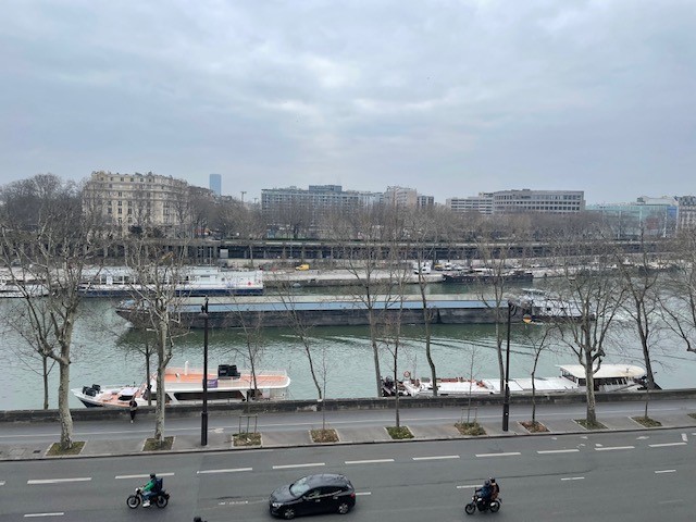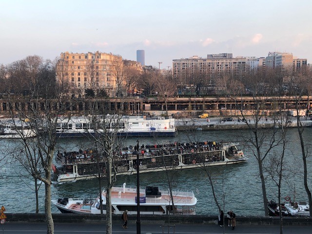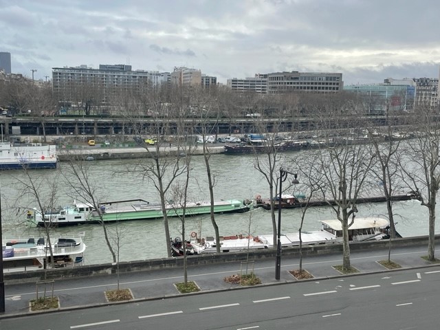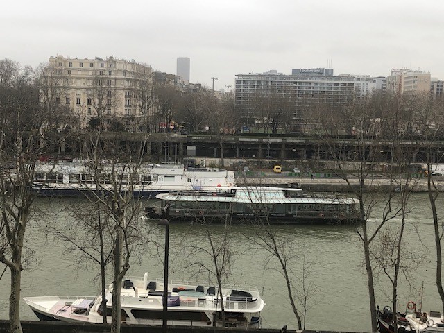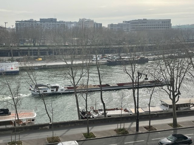 But also lots and lots of barges, some with cars on top – we aren’t sure how they get them down. We also see the Paris version of the Coast Guard now and then – called sapeur pompier seine maritime (Seine Fire Brigade).