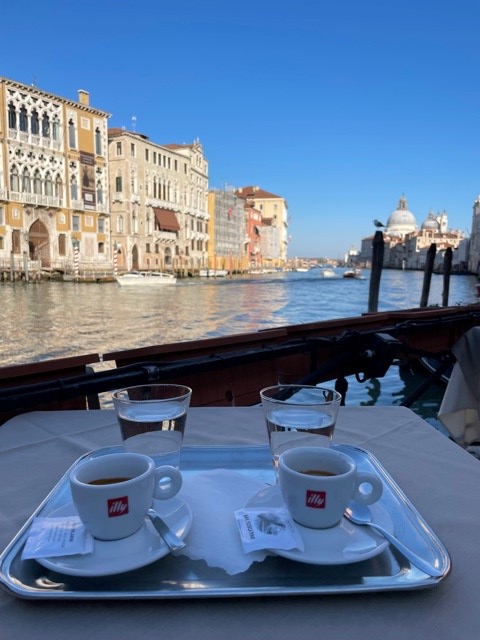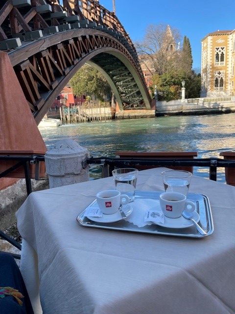 We slowly meandered back home and stopped for cafe espresso under the Academia Bridge, with another great view.