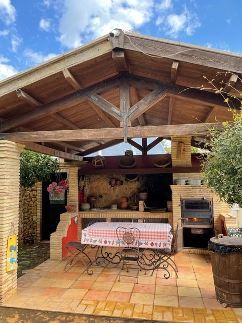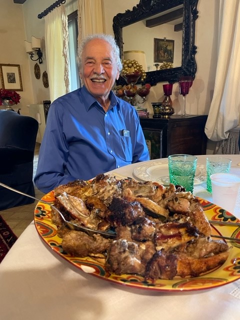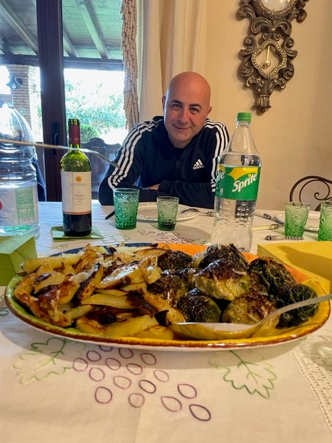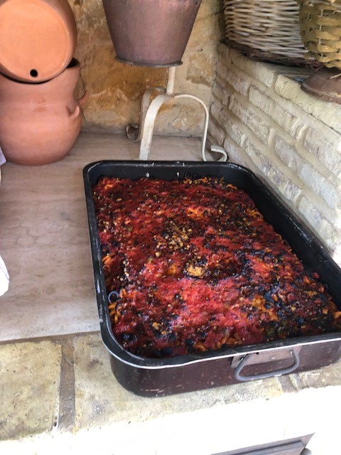 Then pasta al forno made in the outdoor oven, agnello griglia (grilled lamb), and roasted potatoes and artichokes (plus various side dishes).