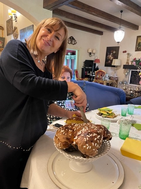 Finally fruit and the traditional dessert of Pasqua – the Colombe – a cake shaped like a dove that Mirella made herself.