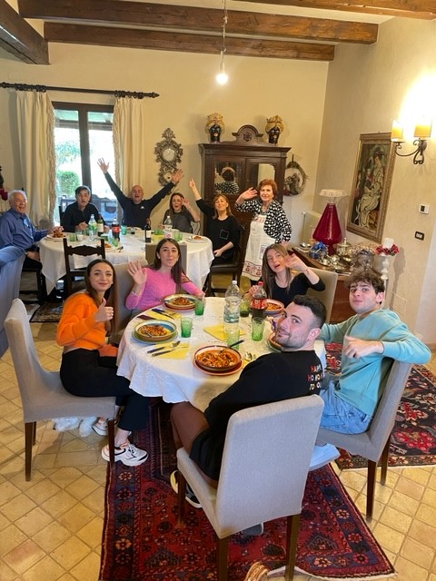 First we ate bowls of fresh ricotta with whey poured over (that Frank and I helped pick up at the farm that morning). Enza told us this helps with digestion to get our stomachs ready for the meal.