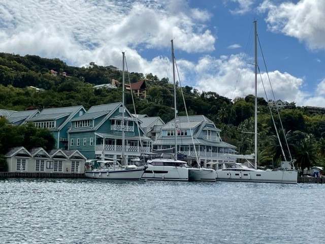 We have rented a VRBO apartment in Marigot Bay on the Island of St. Lucia. We looked all around and thought this looked like the perfect place for two sailors. Marigot Bay is a sheltered harbor with a marina, boat moorings, and a few small resorts. It is away from the hustle and bustle of the big resorts and cruise ships.