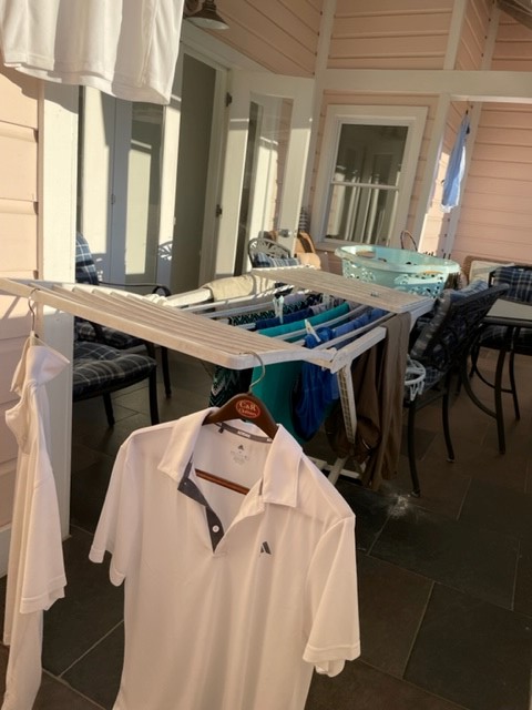 But the dryer is small and takes a long time. And . . . we have such a nice breeze on the porch, so we air dry most items.