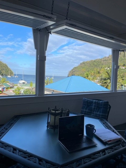 I have my laptop filled with all the regulations and documents I use. We arrived on a Sunday and by Monday morning, I had set up my new office (which I admit does have a good view!).