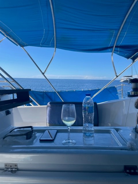 We also discovered the cockpit table was really an ice chest filled with water, beer, wine, and rum punch.