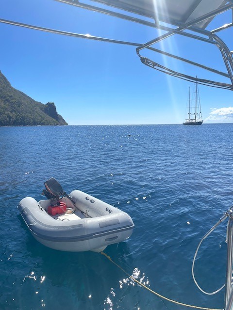 We motored happily back up the coast, leaving the Pitons in our wake, and re-tracing our steps to Marigot Bay.